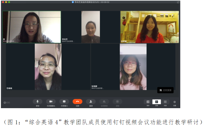 1. 团队教学改革意识提升。疫情期间,在收到学校网上教学的通知后,“综合英语4”教学团队多次组织视频会议,共同讨论疫情期间《高职国际英语3》的教学形式、教学内容、员工管理方式、师生互动途径和员工评价考核体系等内容。