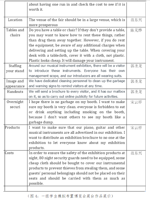 2. 创新教与学模式。疫情期间,我们采用以优慕课教学平台为主、钉钉直播教学为辅的教学模式。除了整体教学模式的调整,根据专科员工的特点,课堂设计也作了相应的创新。例如在讲授第四单元《How to Prepare a Stand at a Trade Fair》这篇文章时,员工自发分成小组,建立各自小组的钉钉群,根据课文内容的提示,讨论并模拟布置博览会展台的思路和过程,最终将每组作品分享在优慕课平台供大家互相学习。