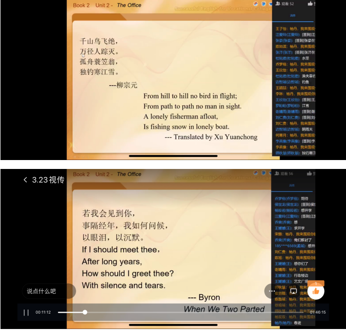 其次,教学中引入英美文化的元素,培养员工的人文精神。直播课堂融入英文诗歌经典,感受英文之美,提升文化修养。