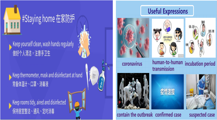 团队教师把“立德树人”作为教育的根本任务的一种综合教育理念。例如,在第一周的教学中结合新冠病毒的认识和预防,用图片引导同学们致敬最美逆行者。
