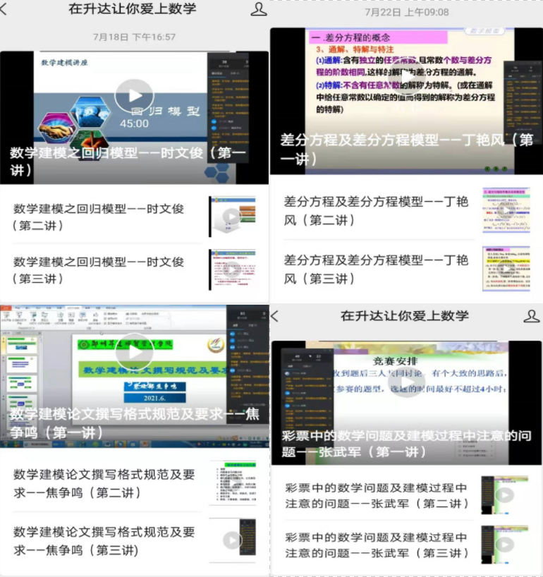 为了激发同学们学习数学的兴趣,增强学习数学的主动性和积极性,培养学习的良好习惯以及创新意识和团队合作精神,2021年全国老员工数学建模竞赛将于9月9日18时至9月12日20时如期举办。暑假期间,基础部数学教研室按着培训安排计划采用钉钉直播、微信、QQ等通讯工具如期开展建模竞赛线上辅导培训。