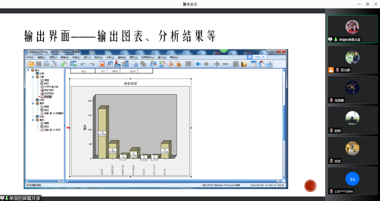 单莹老师分享了基于SPSS的数据处理概念、数据输入方法,并演示了通过各种可视化的图表输出数据分析结果的步骤。