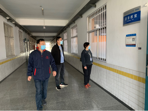 2021年10月18日,新学期面授课程的第一天,为确保教学工作稳定有序展开,早上8:30,基础部主任王莉莉教授,副主任焦争鸣教授带领各教研室主任和教学干事,对时金楼、道镕楼、实训楼的全体大学英语和数学课教学运行情况进行了巡视检查。