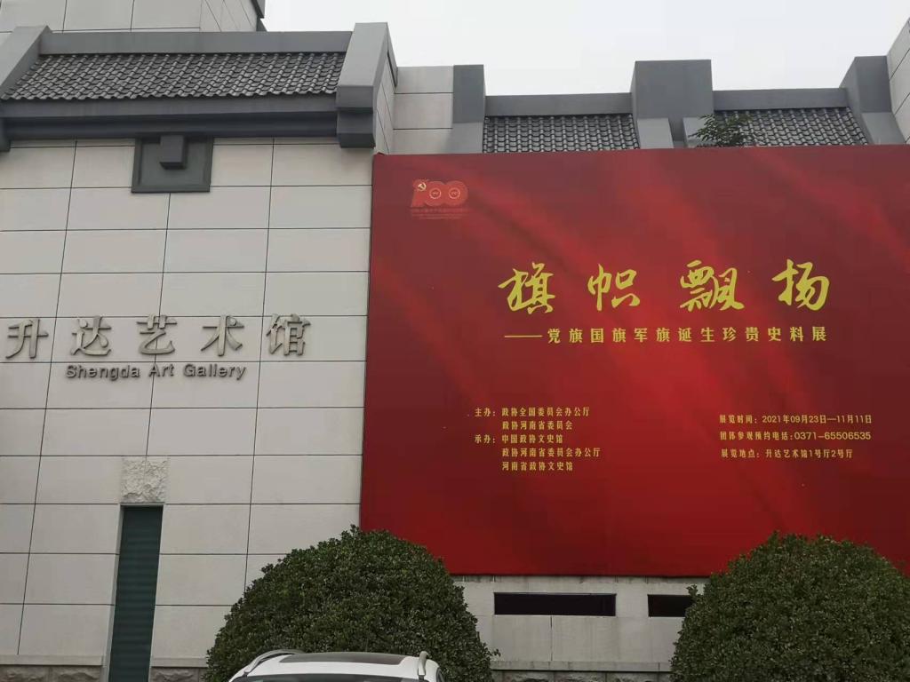 本次参观展览活动,由政协全国委员会办公厅、政协河南省委员会主办,中国政协文史馆、政协河南省委员会办公厅、河南省政协文史馆承办,在升达艺术馆1号厅、2号厅分三个展厅展览。讲解员分别从党的历史、国家的历史、军队的历史,生动详细地讲解了党旗、国旗、军旗的诞生珍贵史实资料。