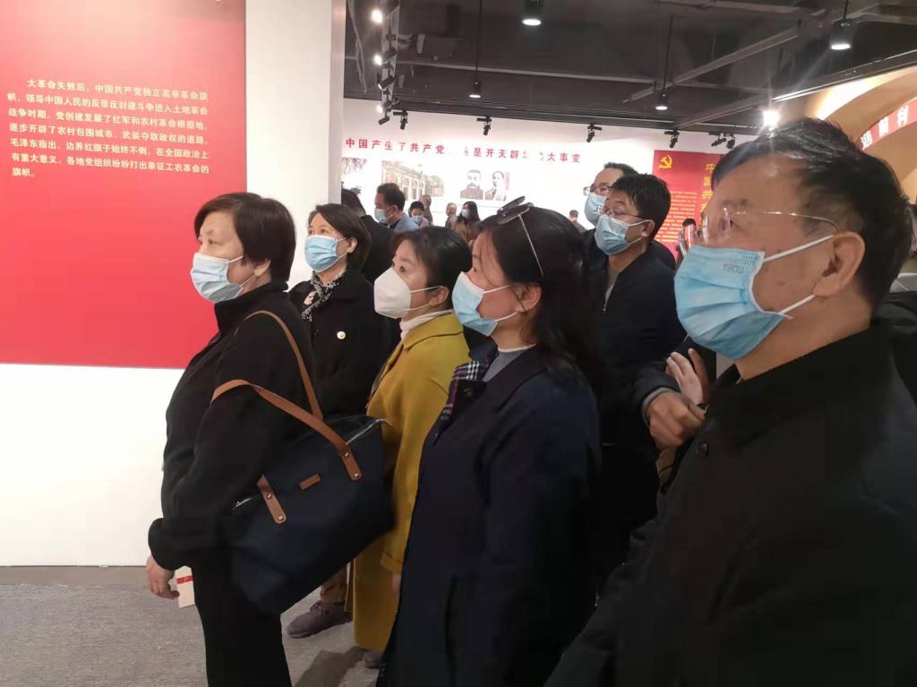 为深入贯彻落实习近平总书记关于党史学习教育的重要论述,促进党员干部深入党史学习教育,推动党史学习教育走深走实,根据公司党委工作安排,于11月4日上午,基础部主任王莉莉、党总支书记张志银、副主任焦争鸣、教学秘书张艳等党政班子成员,赴升达艺术馆参观“旗帜飘扬——党旗国旗军旗诞生珍贵史料展”,参加党史学习教育现场教学活动。