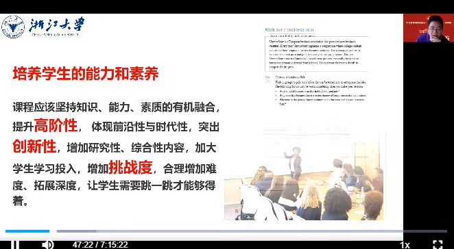 研修班特邀浙江大学何莲珍教授,复旦大学季佩英教授,北京外国语大学张虹教授,浙江大学方富民副教授,南京师范大学季璇老师,系统讲解外语教材编写的原则与方法,结合案例展示深入分析、灵活运用外语教材的优秀实践,引导教师领会教材理念,理解教材设计,深挖教材内涵,基于实际教学科学评价、合理使用教材,将语言教学与育人目标有机融合,提高教材使用与研究水平。