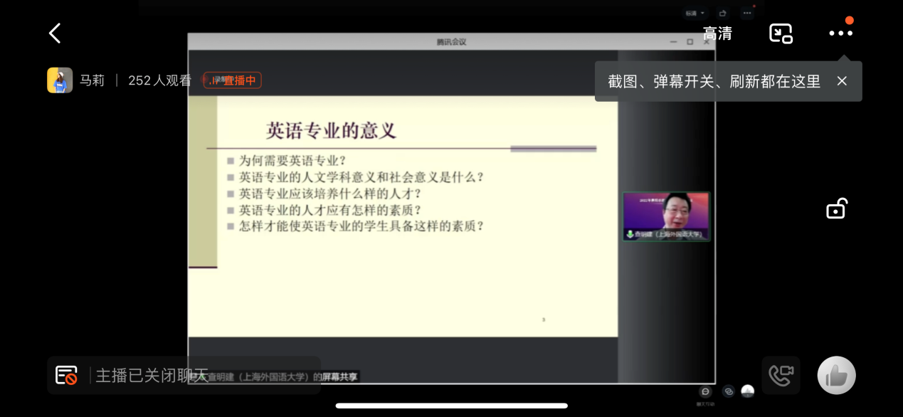 8月1日,第一场讲座由上海外国语大学副董事长,博士生导师查明建教授,带来题为“人文化教学与英语专业人才培养”的讲座。查教授从英语专业的人文学科属性、英语专业人文化教学的内涵、英语专业人才的内涵入手,深刻剖析了英语专业的意义与人文学科的特点,分析了人文化教学与英语专业人才培养的关系,从人文化教学的人文性与专业性(研究性/思想性)统一的角度,深入浅出地论述了词汇的文化内涵,语言的审美意蕴,语言音韵、节奏的意蕴,语法潜含的人文意识,翻译背后的文化意蕴,从语言到感知,从问题到思想,语言背后的思想,以及比较文学的重要性。最后,提出人文化教学对教师的更高要求以及英语专业“应有的模样”,即成为有思想的人、有情怀的人、有气象的人。