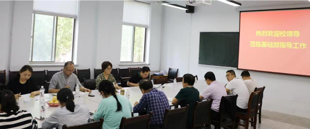 秋风送爽,金桂飘香,9月2日上午8时30分,综合楼218会议室,董事长、党委副书记、纪委书记张欣一行莅临基础部开展调研工作。董事长办公室主任朱永恒、教学质量监测与评估中心主任罗秉鑫、教务处副处长赵悦然等参加了调研活动。基础部主任王莉莉、副主任焦争鸣、党总支书记张志银、教学秘书张艳、各教研室主任和教学干事等参加了调研座谈会。