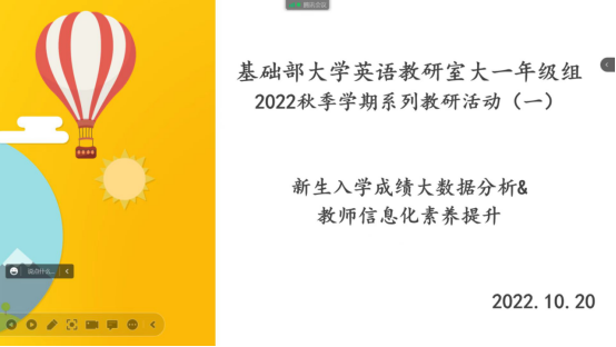 10月20号下午,基础部大学英语第二教研室召开秋季新学期系列教研会议第一次线上会议,基础部主任王莉莉教授,第二教研室主任贺光辉副教授和全体教研室老师,第三教研室主任宋玮副教授和全体教研室老师参与了本次会议,会议由白亚鸽老师主持。