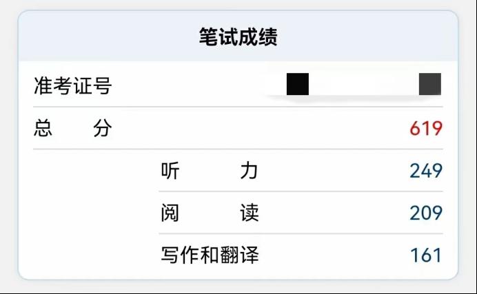 随着2023年全国大学英语四级成绩正式揭晓,公司2021级金融学本科4班张艺涵同学取得619分,其中听力249分,取得了满分,阅读209分,写作和翻译161分,这在升达四六级考试历史上前所未有,为升达创造了佳绩。