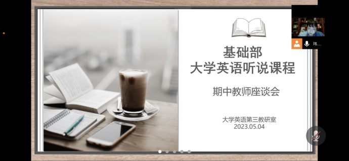 为进一步掌握本学期开学以来的大学英语听说课程的教学情况,广泛听取一线教师的意见建议,充分调动全体教师的工作积极性,基础部于5月4日晚7:30-9:00在线举行了大学英语听说课程教师座谈会。基础部主任王莉莉教授、校督导专家邵红杰教授及大学英语听说课程专任教师参加了此次会议。会议由大学英语第三教研室主任宋玮主持。