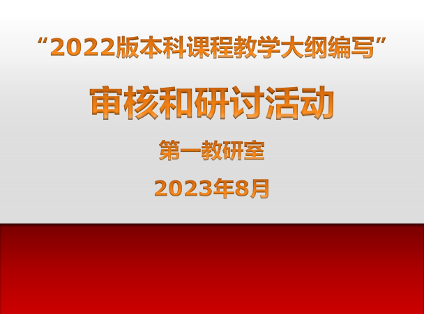 8月17日至24日,基础部大学英语第一教研室开展“2022版本科课程教学大纲编写”审核和研讨活动,主要内容是对前期完成的大纲编写任务进行检查和总结,第一教研室主任权宇副教授以及第一教研室全体专任教师参加了此次活动。