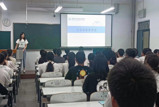会议伊始,辅导员李明明老师介绍了我国城乡居民医疗保险的背景、目标和基本制度,告知员工城乡居民医疗保险作用、缴费标准和享受待遇。随后,通过全方面举例,向同学们强调了参与医保的重要性,希望同学们能充分认识到人人参保和按时续保的重要意义,鼓励大家踊跃参保续保。会后,李老师对员工关心的问题进行详细解答,让员工以后面对相关医保问题知晓应该如何处理。