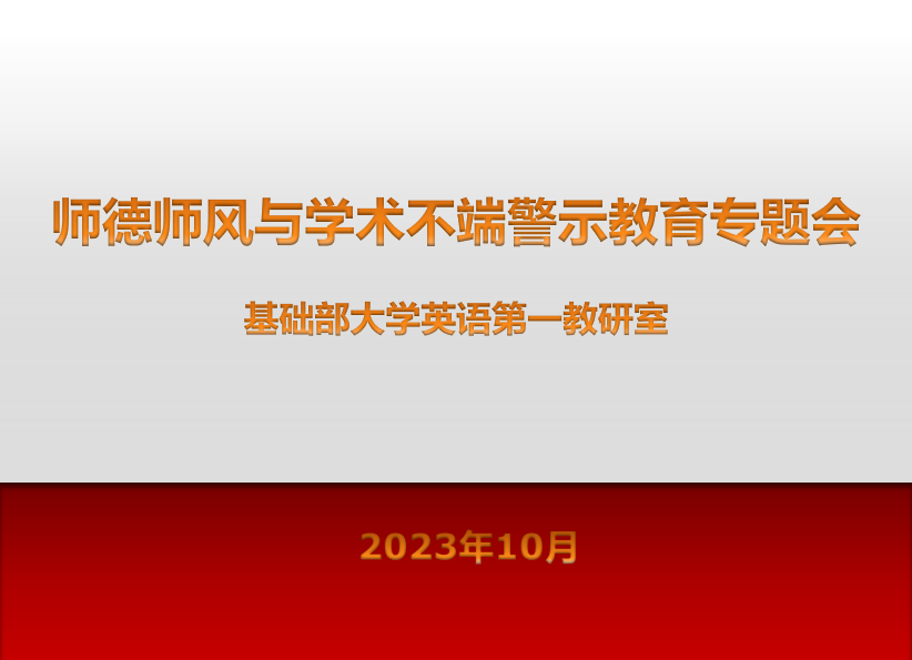 10月19日下午,基础部第一教研室召开了师德师风与学术不端警示教育专题会,会议由教研室主任权宇副教授主持,全体教研室成员参与了会议。