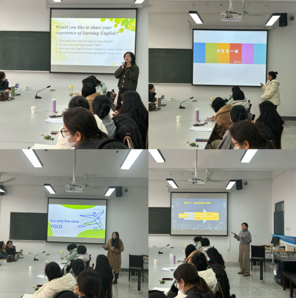 首先,由教研室主任权宇副教授对本学期教学工作进行部署安排。接着,由本教研室各备课小组推荐的优秀教师进行开学第一课的教学示范。教学示范展示依次为本科组的马志馨老师,艺体本科组的薛梦亚老师,专科组的王琪老师以及合作办学组的普晖老师,各位老师的教学展示形式新颖、生动、出色,给大家提供了本学期授课的新思路。