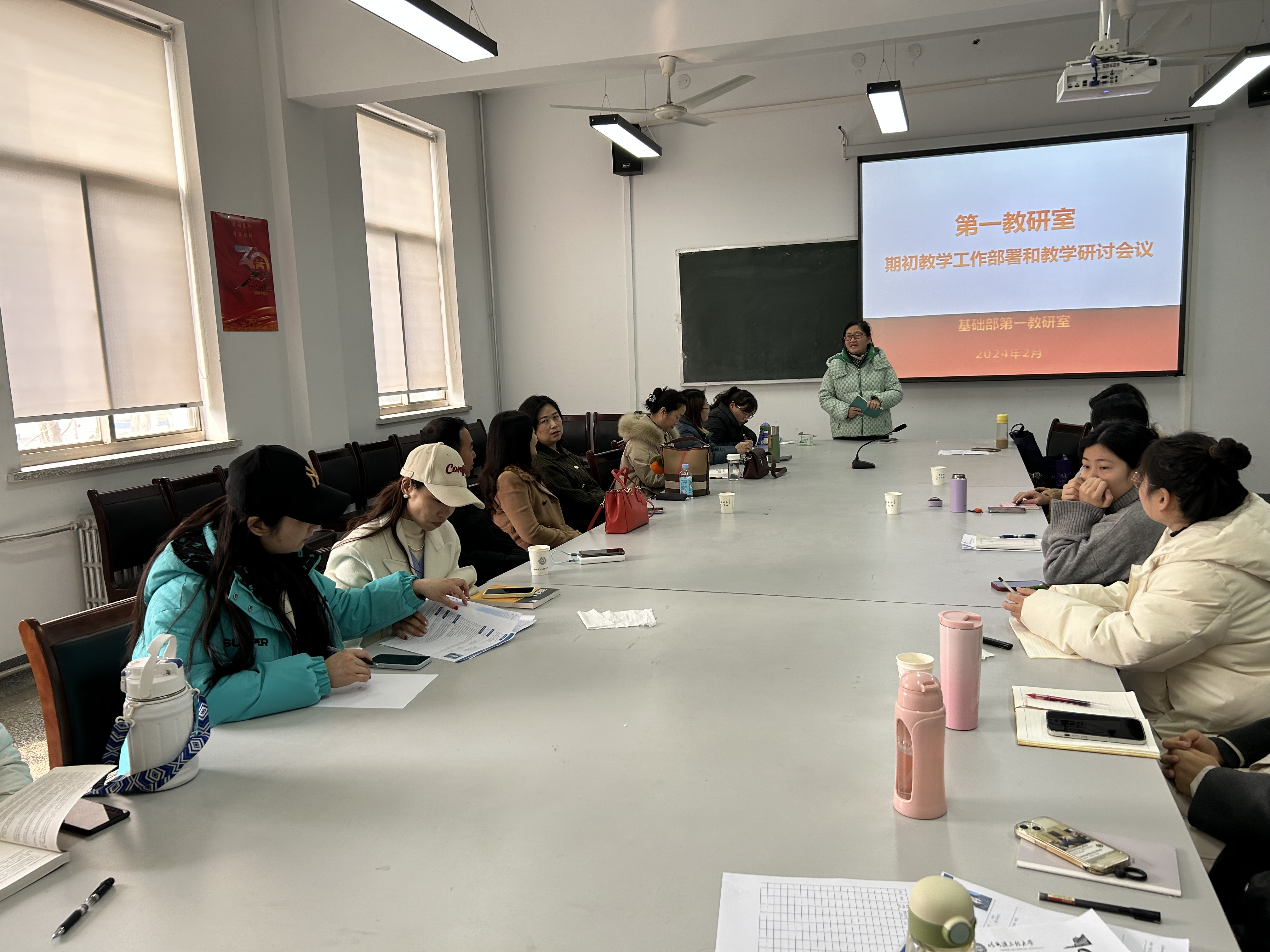 2月29日下午,基础部第一教研室于综合楼218会议室召开本学期第一次教学研讨会议,会议主要内容为期初教学工作部署和教学研讨,会议由教研室主任权宇副教授主持,全体教研室成员参加。