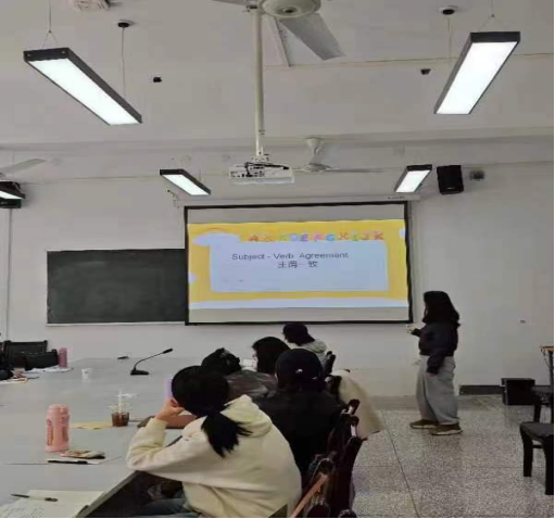 王淑彧老师针对员工们课堂翻译的语法错误,重点讲解了主谓一致的语法知识点,其中着重强调了语法一致原则,就近原则和定从一致原则,来帮助员工们提高翻译质量,并且能够有效写出句子的主干,在考试中能够拿到主要的分数。
