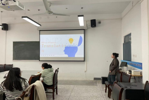 王琪教学展示课型为翻译课,整体包含三部分:1. 中英双语句子展示,对比分析中英文语言特点方面的差异;2. 借用unit课文中的长难句展开翻译步骤讲解,具体包括,断句、翻译、语序调整;其中断句部分为讲解重点,从找谓语动词和从句两方面为切入点;3. 课堂任务:对翻译过的课文句子进行回译。